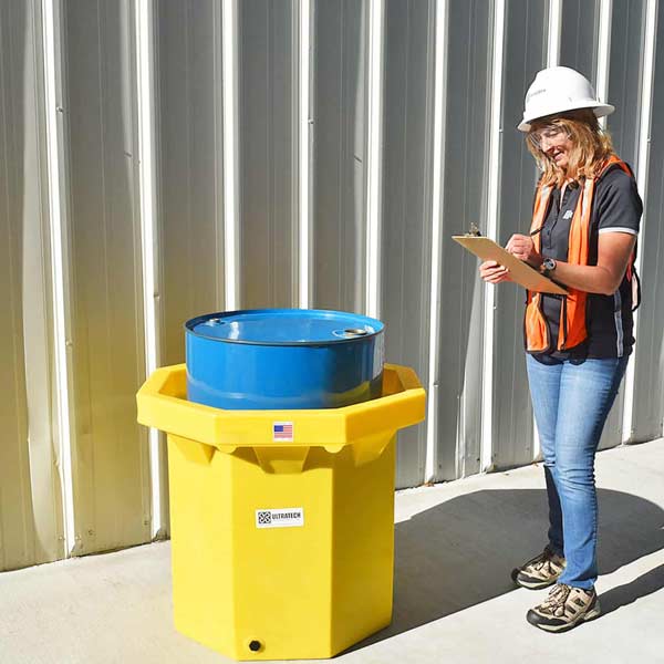 Applications include satellite waste collection, general chemical drum storage, and portable drum pumping stations. The unit’s polyethylene construction resists rust and corrosion, providing a long-lasting solution for hazardous material containment.