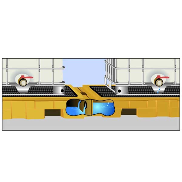 - Modular spill pallets can be connected with bulkhead fittings for shared containment