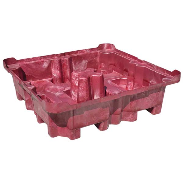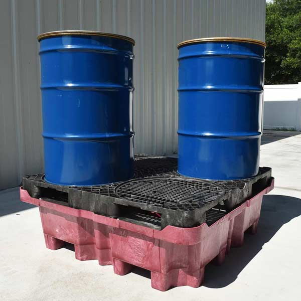 The Ultra-Spill King integrates material handling capabilities with advanced spill containment for four drums. Its design combines a forkliftable top deck with a forkliftable bottom sump. Recessed drum rings molded into the top grate keeps drums from moving or shifting while they are being moved. And a large 85 gallon containment sump exceeds EPA and SPCC requirements for storage of 55-gallon drums.