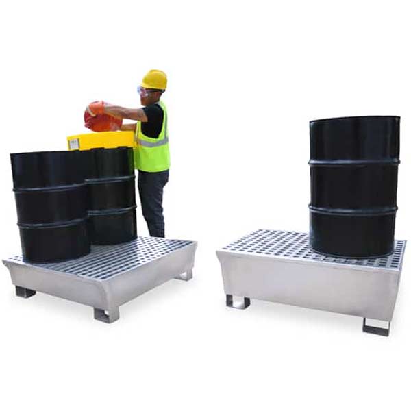 This steel spill containment pallet is the ideal solution for industrial environments requiring secure, durable, and compliant storage of hazardous fluids.